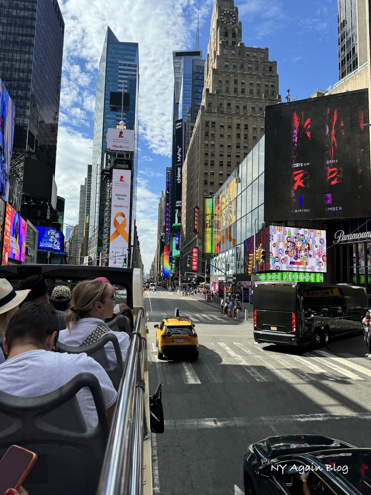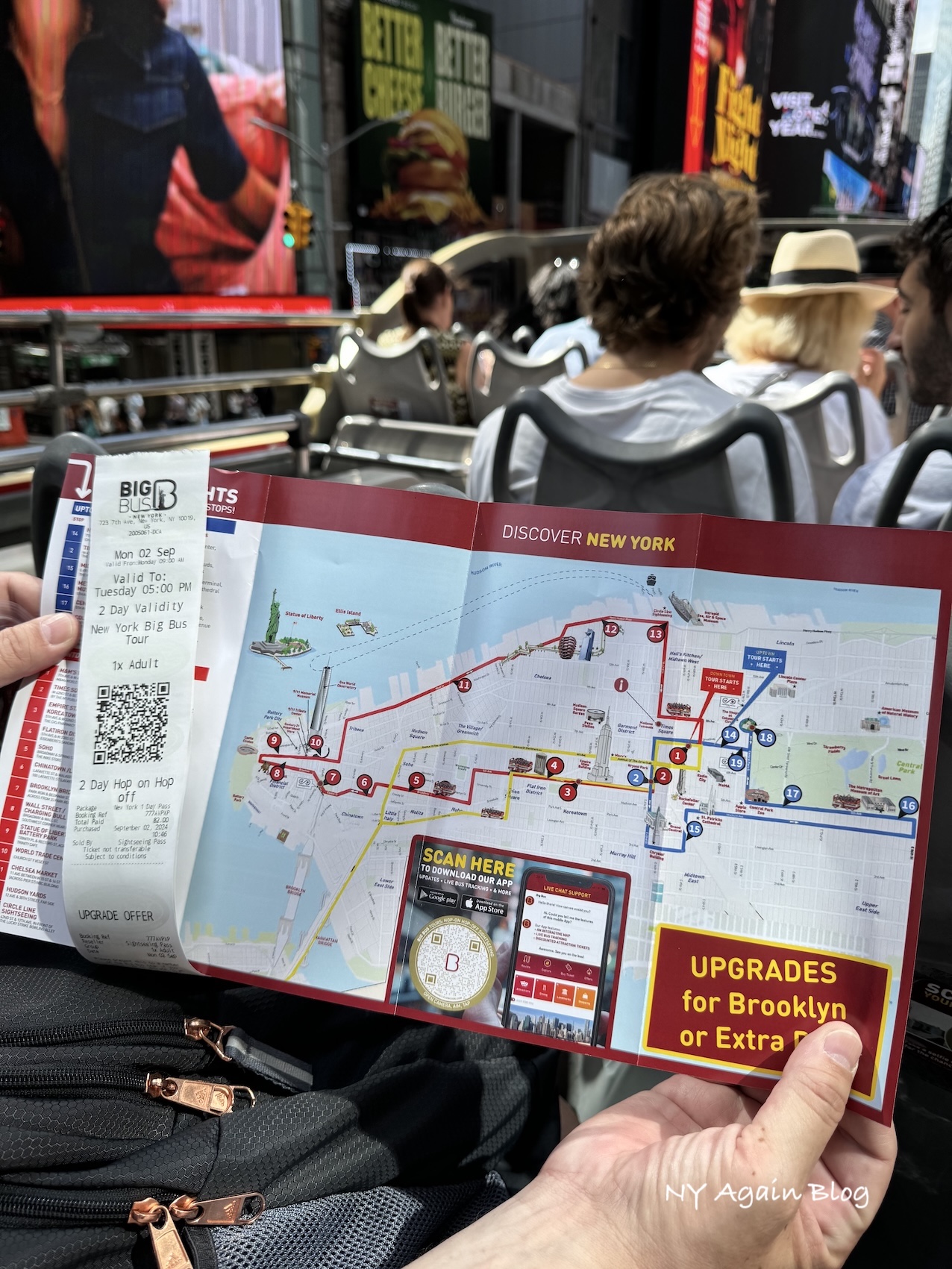 El recorrido de la ruta roja (Downtown) empieza por la Avenida Broadway disfrutando de un paseo por Times Square.
